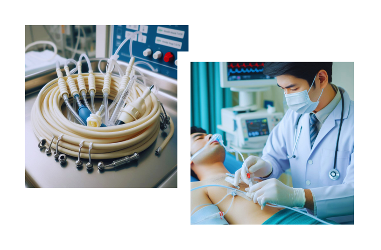 Flexible plastic tube inserted through chest wall drains pleural cavity, treating conditions like pleural effusion, pneumothorax.