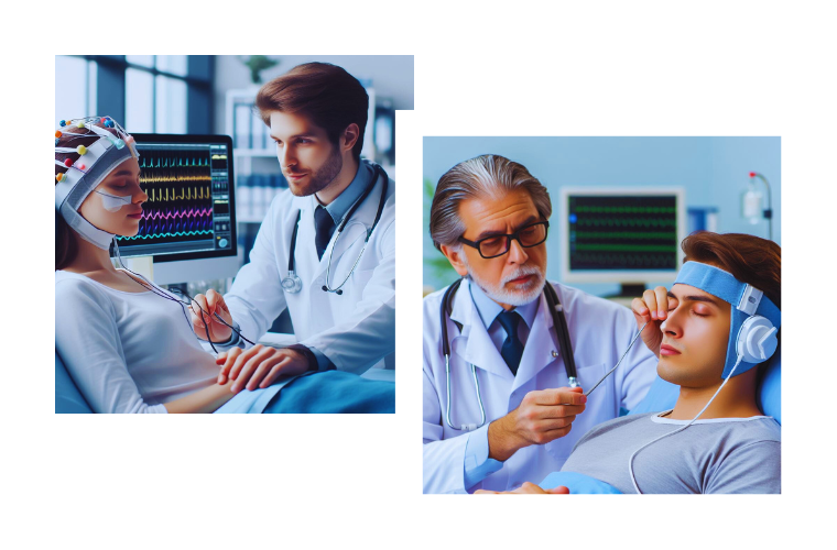 Sleep study: Diagnoses sleep disorders, records brain activity, oxygen, snoring, apnea, hypopnea, heart rate, movements.